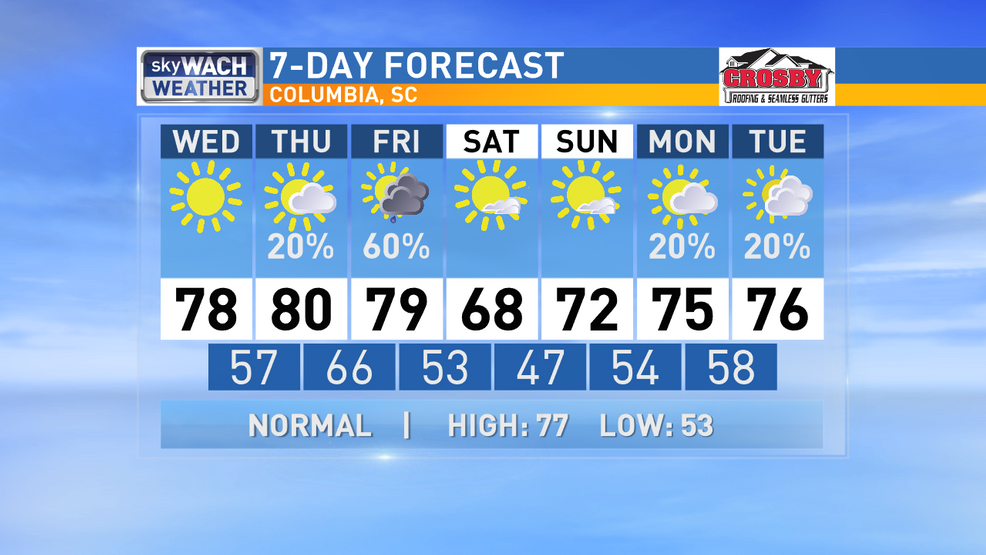 Announce upcoming event time in local time in columbia, sc. Forecasted weather conditions the coming 2 weeks for columbia. 2 week extended forecast in columbia, south carolina, usa. Wind, precipitation, air temperature, clouds and.more pressure will remain unchanged 29.9inhg temperature day, will not rise above the mark +81°f, and night 23 october will not fall below +66°f.
