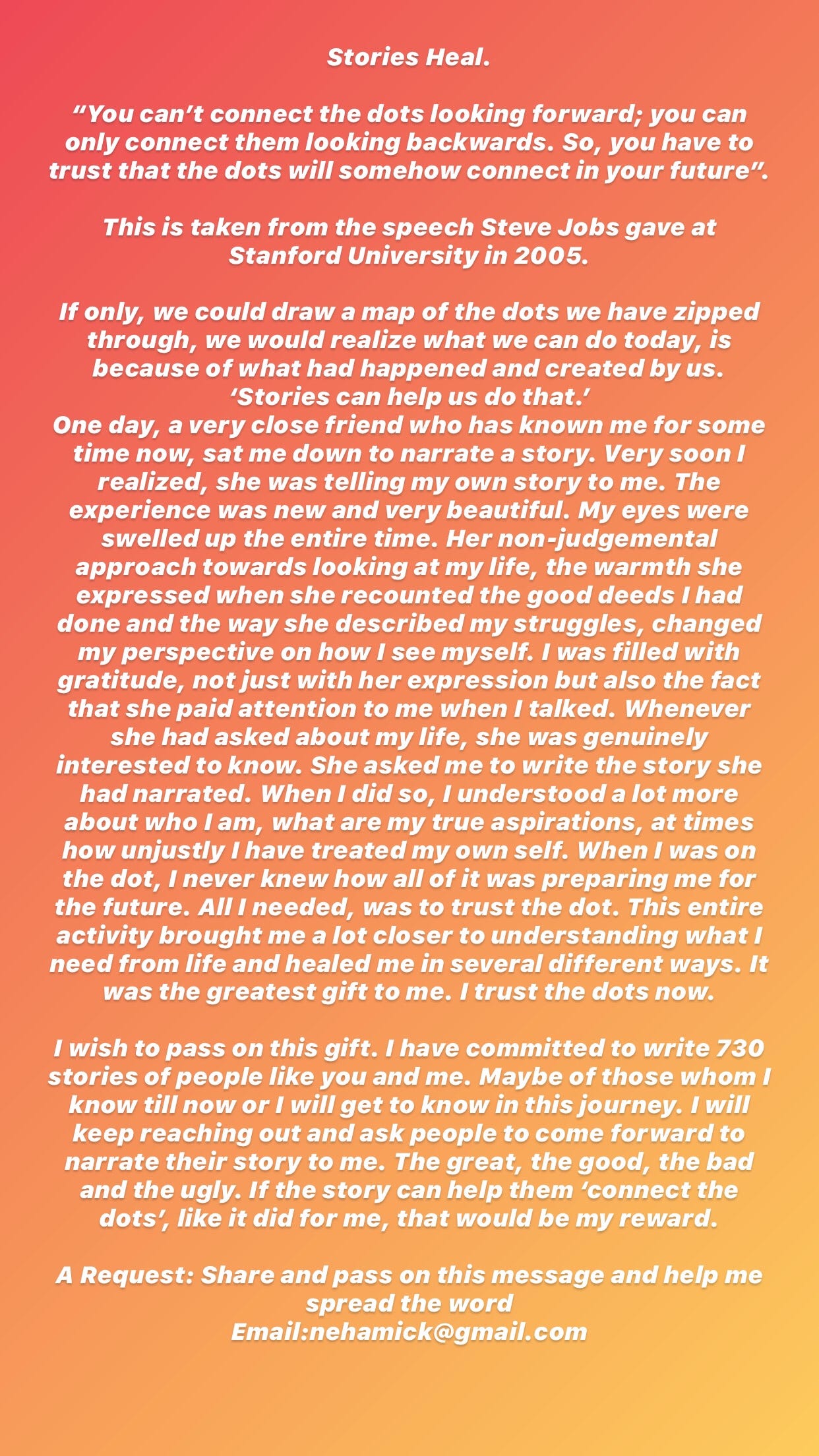 And that will make all the difference. You can only connect them looking backwards. You can't connect the dots looking forward;