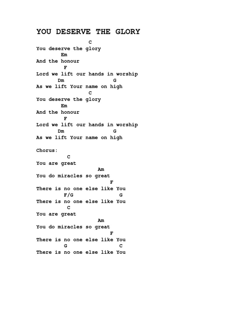 And the bm honou em r. You deserve the glory and the honor lord we lift our hands in worship and we bless your holy name. • you deserve the glory (live).