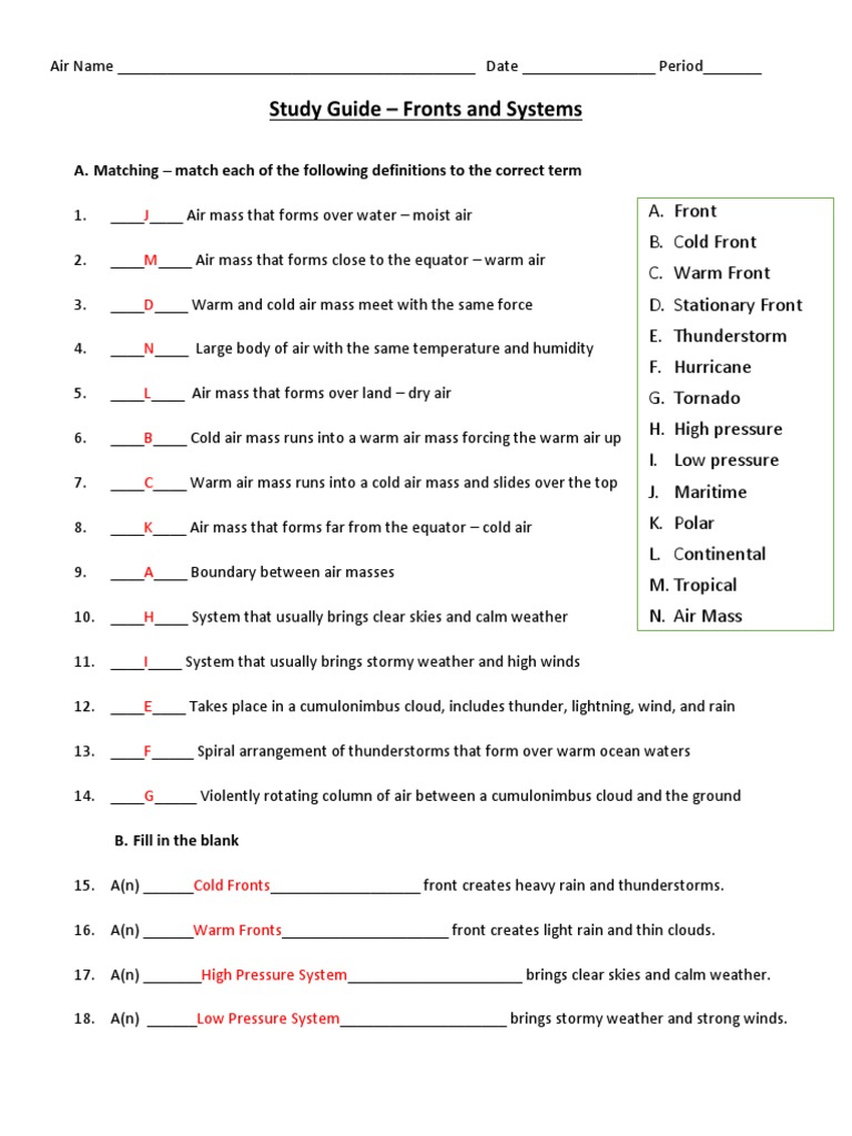 View Air Masses And Fronts Worksheet Answer Key